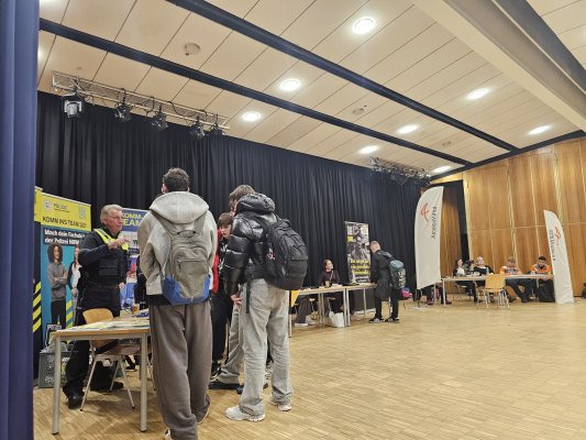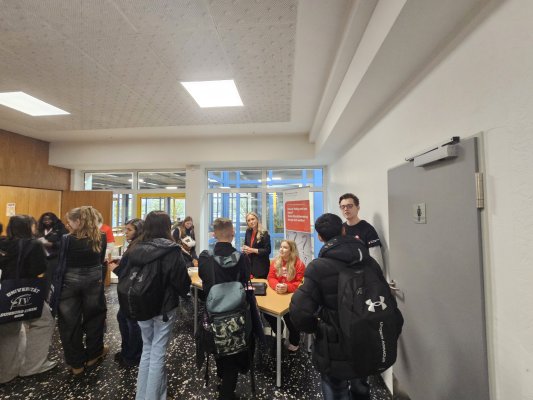 Am Dienstag, den 02. Dezember 2025, fand die 2. GSM-Berufemesse in der Aula statt. Eine große Auswahl an regionalen und überregionalen Arbeitgebern und Universitäten stellten sich vor. Die Jahrgänge 9 – Q2 konnten so den Tag über allgemeine Informationen sammeln, Kontakte knüpfen und in verschiedene Berufs- und Studienfelder eintauchen. Alles in allem war es ein spannender Tag, der viele neue Perspektiven ermöglichte.