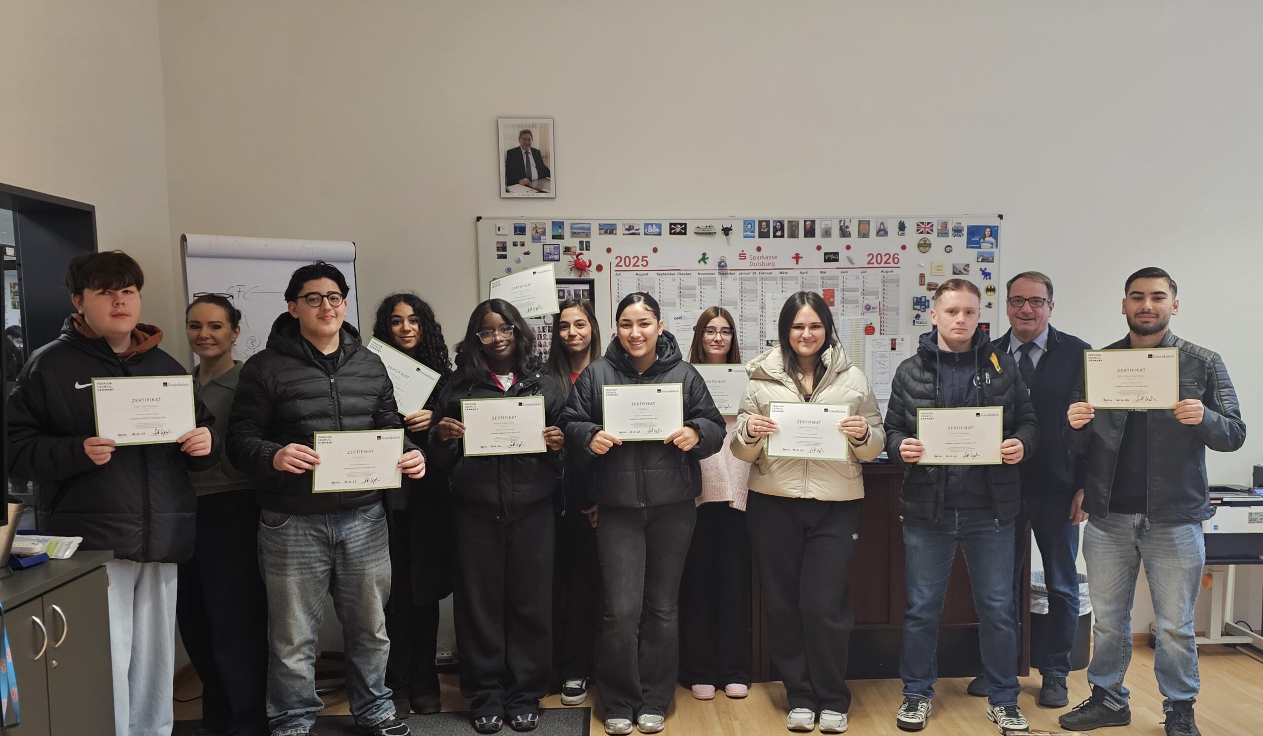 Mit großem Engagement, Teamgeist und einer guten Portion Neugier haben unsere Zehntklässlerinnen und Zehntklässler das Projekt „Generation Zukunft“ erfolgreich gemeistert. Nach einem intensiven Workshop-Tag, spannenden Online-Kursen und anspruchsvollen digitalen Tests konnten sie nun stolz ihre Zertifikate entgegennehmen. Die Leistung ist beachtlich: Bundesweit nahmen zahlreiche Jugendliche teil – doch nicht alle erreichten die Zertifizierung. Unsere Schülerinnen und Schüler haben gezeigt, wie viel Potenzial und Motivation in ihnen steckt. Ein besonderer Höhepunkt: Die besten Zertifizierten erhielten sogar die Chance, nach Schottland zu reisen, um sich dort professionell mit dem Thema Mode auseinanderzusetzen. Eine inspirierende Erfahrung, die Mut macht, neue Wege zu gehen und eigene Talente weiterzuentwickeln. Wir freuen uns mit allen Teilnehmenden und gratulieren herzlich zu diesem tollen Erfolg!
