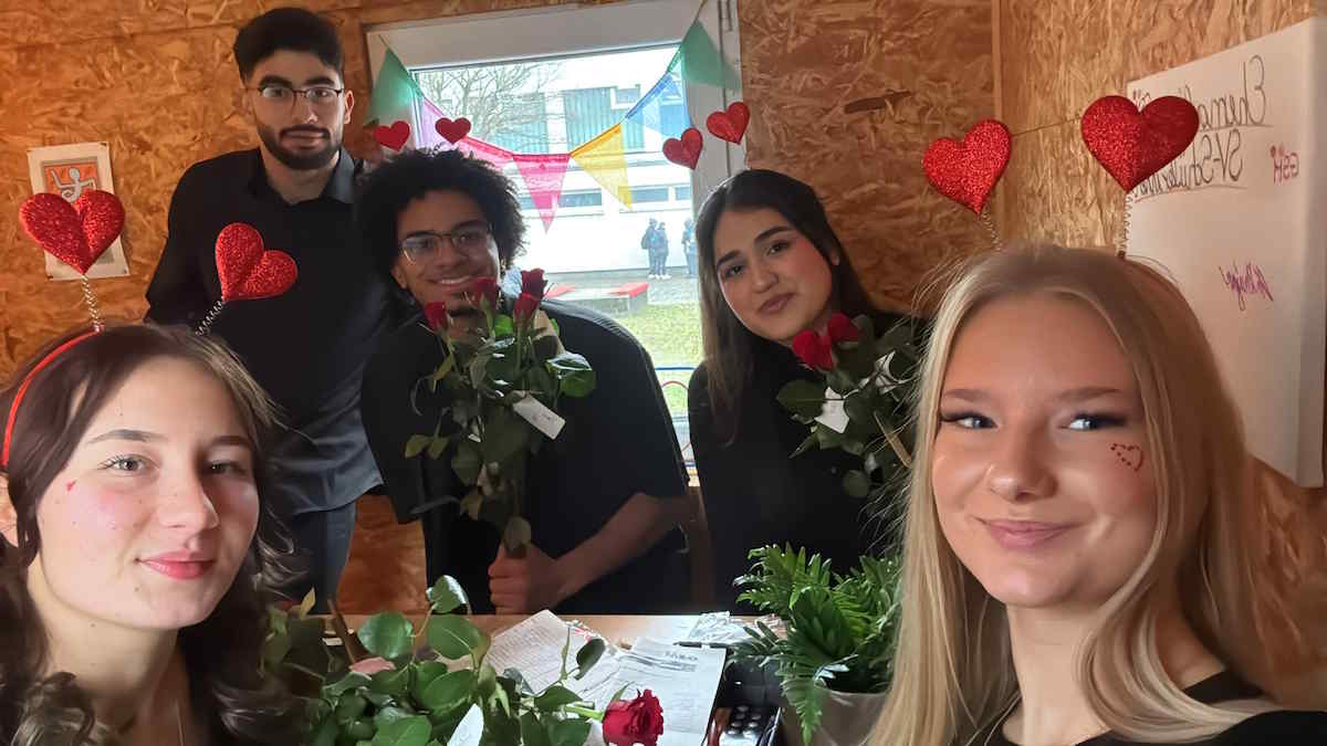 Eine Woche vor dem Valentinstag haben wir Rosen verkauft, die wir dann am Valentins- bzw. Freundschaftstag verteilt haben. Mit dieser Aktion wollten wir nicht nur den Valentinstag feiern, sondern vor allem auch Freundschaft und Wertschätzung in unserer Schulgemeinschaft zeigen.